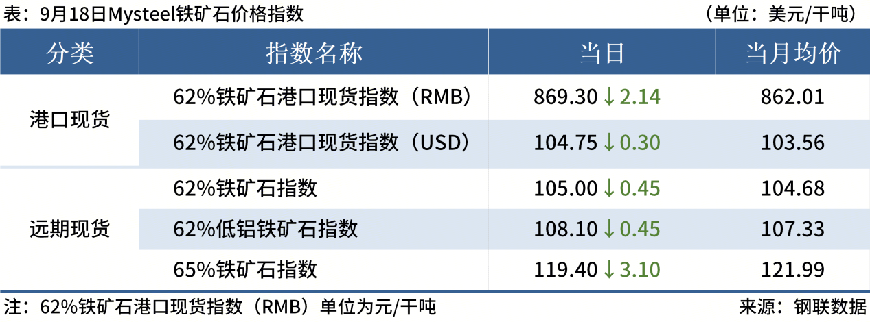 ◎ 9月18日,全國主港鐵礦石成交97.40萬(wàn)噸,環(huán)比減23%;237家主流貿易商建筑鋼材成交8.78萬(wàn)噸,環(huán)比減14.5%。